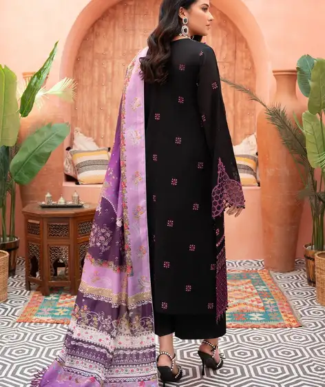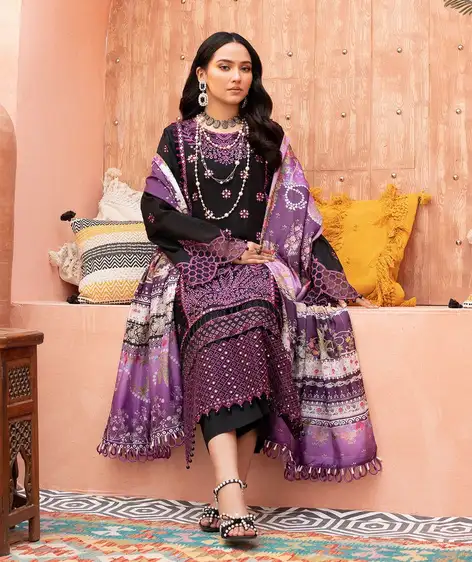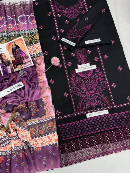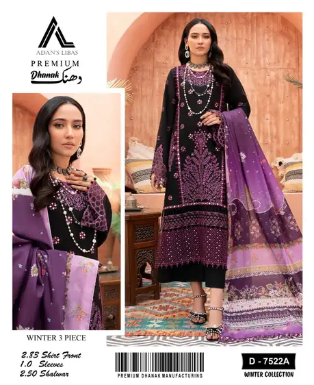 The Adanas Libas Winter Collection embodies elegance, comfort, and premium craftsmanship in every thread. This 3-piece unstitched Dhanak suit is crafted from high-quality Dhanak fabric, perfect for the winter season. The front is fully heavy embroidered, complemented by a beautifully designed embroidered daman patch and intricately embroidered sleeves for a sophisticated finish. The plain trouser offers a balanced and graceful contrast, while the digital print wool shawl adds a luxurious and cozy touch, completing the ensemble with a modern flair. Designed for both elegance and durability, this outfit guarantees warmth and timeless style for the cold months ahead.