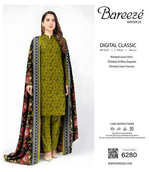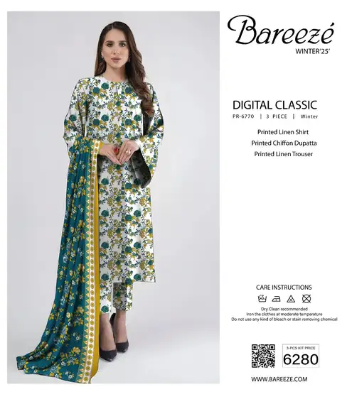 Experience elegance with BAREEZEโs Digital Printed Linen Collection. Crafted in premium linen fabric, each suit carries refined digital prints for a timeless look.