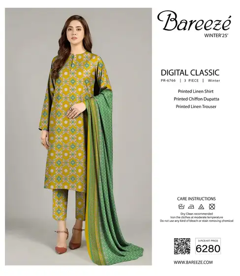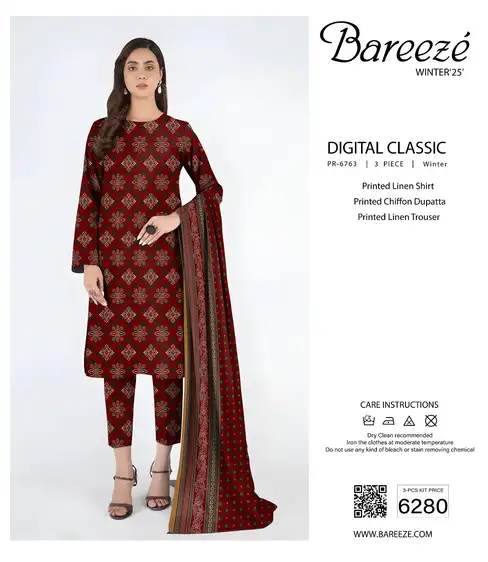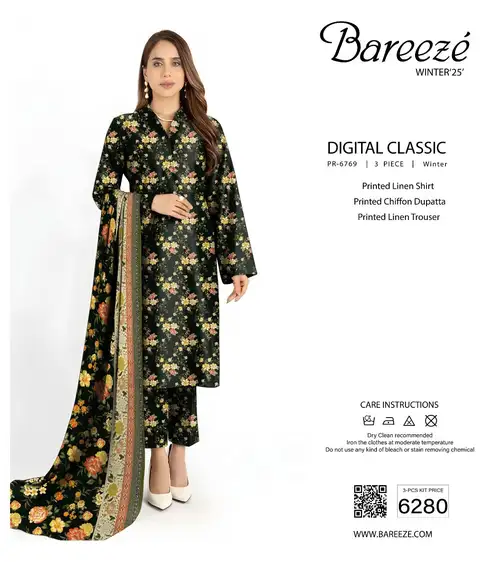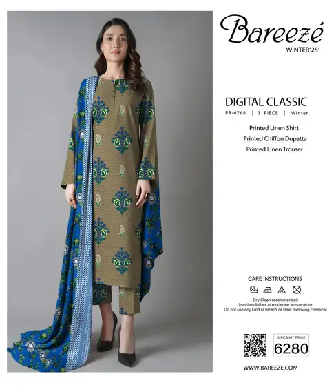 Includes: Digital Printed Shirt + Digital Printed Chiffon Dupatta + Digital Printed Linen Trouser