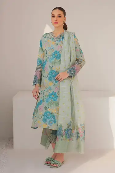 Experience the rich elegance of winter with the Baroque Khaddar Edition, a luxurious 3-piece unstitched suit designed to combine tradition with modern sophistication. Made from premium Khaddar fabric, this outfit features embroidered patches on the neck, sleeves, border, and trouser, adding a regal touch to its look. The digitally printed front, back, sleeves, and shawl showcase Baroque’s signature artistry, creating a vibrant and timeless aesthetic perfect for winter festivities. The Khaddar dupatta, finished with detailed digital prints, complements the ensemble with grace, while the matching trouser completes the rich winter charm. This collection is the perfect blend of comfort, durability, and designer style — ideal for women who love to stand out in elegance.