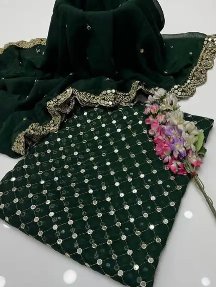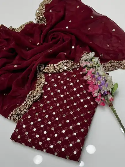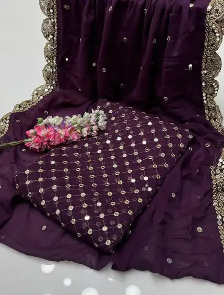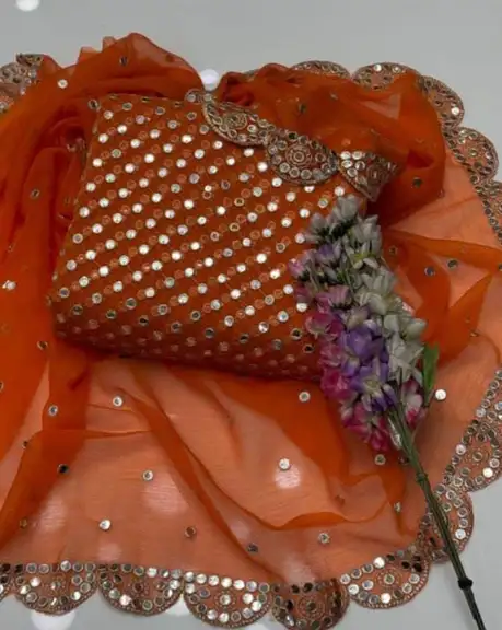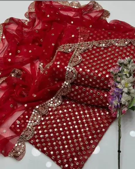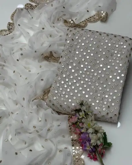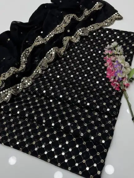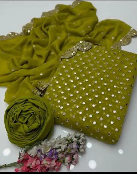 🧣 Dupatta: Matching Chiffon Dupatta with Heavy Sheesha Pani Work and stunning 2-Side Cutwork Borders.