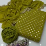Get ready to shine with the most elegant party wear of the season, exclusively at SheraziShoppingCenter. This 3-piece suit combines traditional Zari embroidery with modern Sheesha Pani work for a breathtaking look.👕 Shirt: Premium Soft Chiffon featuring Heavy Sheesha Plastic Pani Work & Intricate Zari Embroidery.