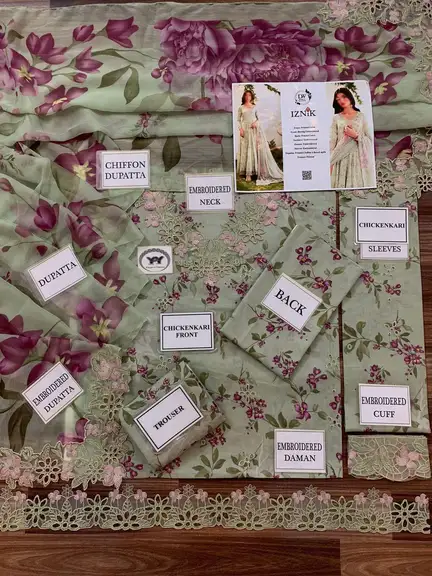 🧣 Dupatta: Premium Chiffon Dupatta (Features 4-Side Applique Work + 4 Embroidered Bunches).
