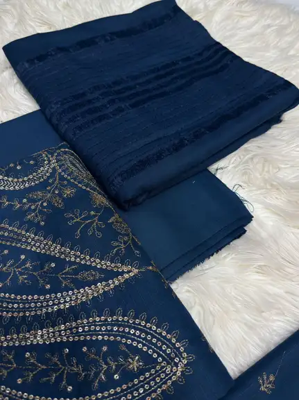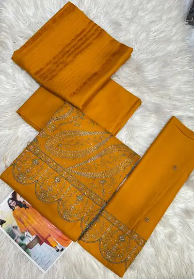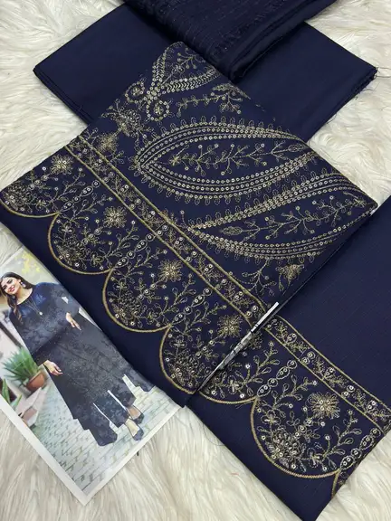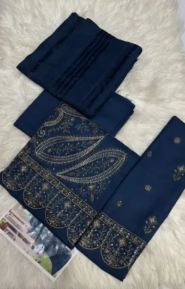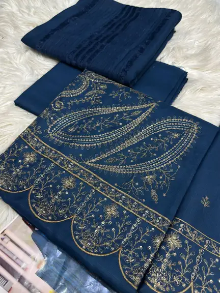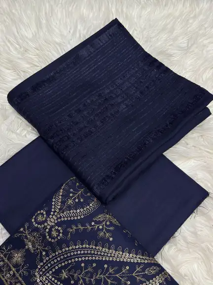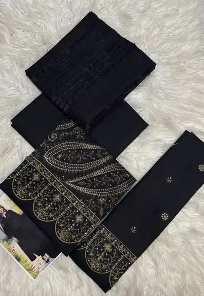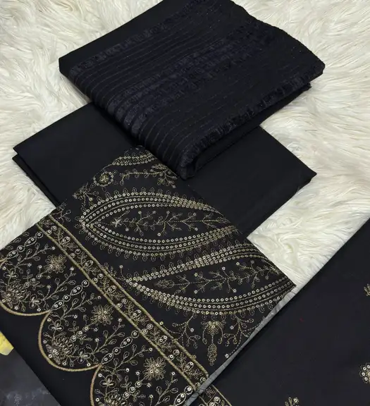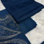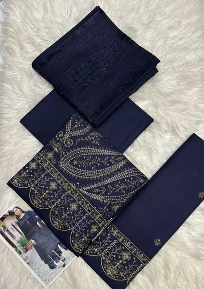 Presenting the premium Luxury Embroidered 3-Piece Winter Suit, stitched on Best Export Quality Airjet Dhanak Fabric.