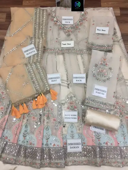 🌸 Mariyam Hussain Premium Organza 3-Piece Suit