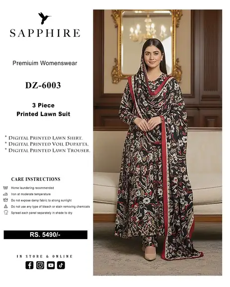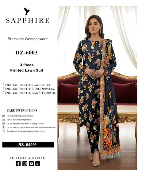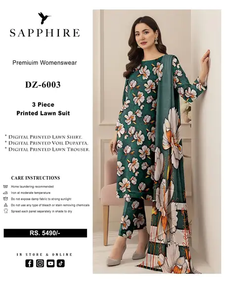 Be the first to review “Sapphire 3 Piece Digital Printed Lawn Suit Vol DZ 6003”