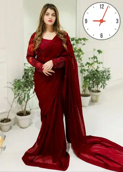 The SSC Premium Saree Collection 2025 redefines elegance with its luxurious craftsmanship and impeccable attention to detail. This ready-to-wear stitched saree is a true showstopper, made from premium chiffon fabric and adorned with heavy sequence embroidery and 500 hand-attached pearls across the full 7 yards. The saree features four-side fancy lace work, exuding timeless sophistication and glamour. It comes with a silk petty coat and a beautifully embroidered organza blouse—complete with inner lining for added comfort and grace. Designed to deliver a royal, refined look for weddings, parties, or festive occasions, this saree embodies the perfect fusion of luxury and comfort.