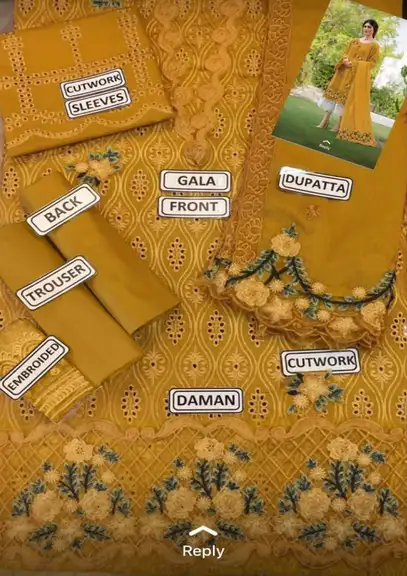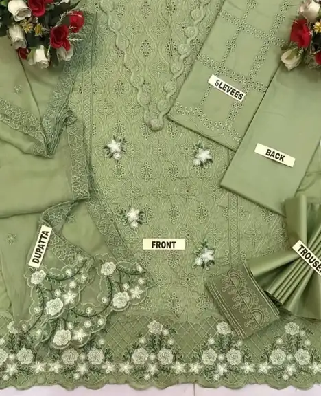 • 🧣 Dupatta: Premium Chiffon Embroidered Dupatta.
